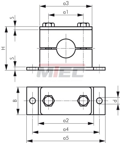 Doppelrohrschelle 6mm, mit Anschweiß- und Deckplatte